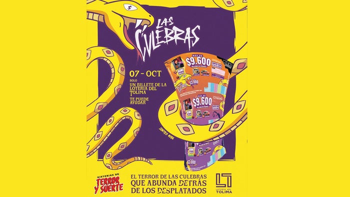 Durante el mes de octubre, la Lotería del Tolima presentará una serie de "Historias de Terror y Suerte", recreando esas situaciones que todos enfrentan cuando el dinero escasea. Desde no tener con qué pagar las cuentas, ser perseguidos por las deudas, hasta esos momentos en que llegan antojos y el cajero está en ceros. A través de esta estrategia comunicacional, se busca contarle a los colombianos que, con un plan de premios atractivo que superan los $9.600 millones de pesos y un premio mayor de $3.000 millones, la Lotería del Tolima es la llave para salir de esas situaciones que, para muchos, se vuelven auténticas pesadillas.