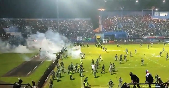 Al menos 127 personas murieron luego de que fanáticos enardecidos invadieron la cancha tras un partido de fútbol en Malang, Indonesia, la noche del sábado, informó la policía.