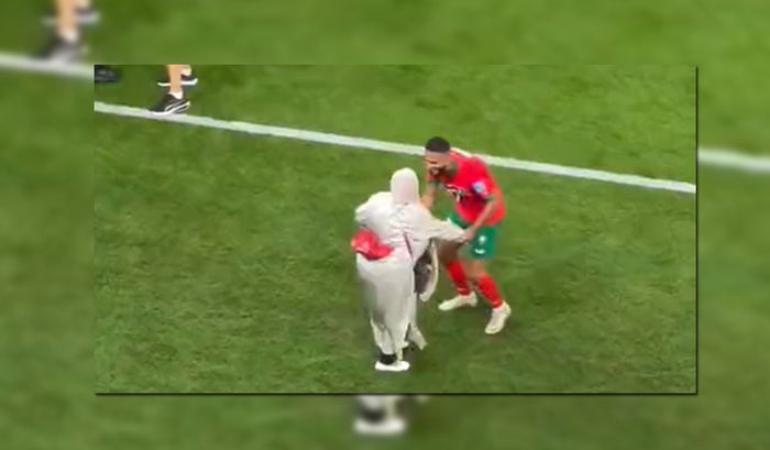 Tras finalizar el partido entre Marruecos y Portugal por los cuartos de final del torneo, una de las imágenes que se hizo viral al rededor del mundo fue la celebración de Sofiane Boufal en compañía de su mamá.