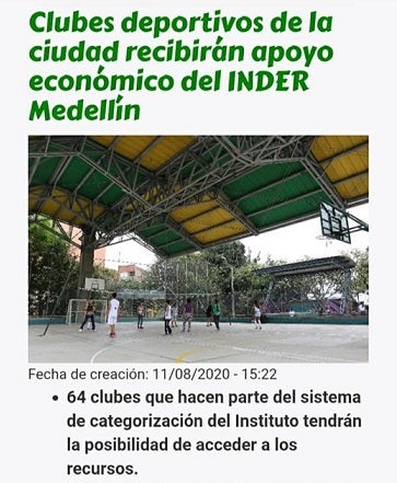 Con el propósito de ayudar a los clubes deportivos de la ciudad en estos momentos difíciles de pandemia, el INDER Medellín destinará un total de $361.800.000 para distribuir entre 64 clubes que hacen parte del sistema de categorización que tiene la entidad.
