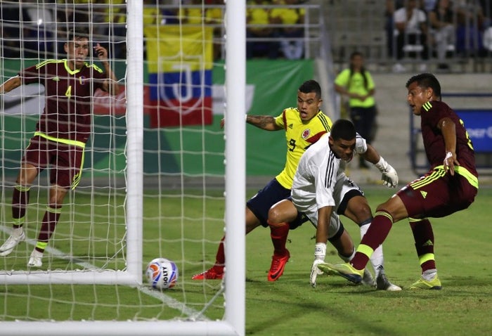 El primer tanto del partido llegó en el minuto 11 a través del defensa venezolano Gutiérrez con un gol en su propia meta, luego de una jugada del atacante colombiano Palacios. El venezolano Flores buscó la paridad del partido tras un cabezazo dentro del área pero el esférico golpeó el palo del arco de Colombia.