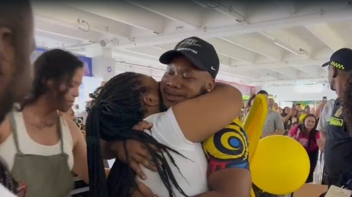Cientos de caleños esperaban al deportista en el barrio Los Guaduales, al norte de Cali, ahí, en una tarima Yeison agradeció a todos por el acompañamiento y habló de su resiliencia.