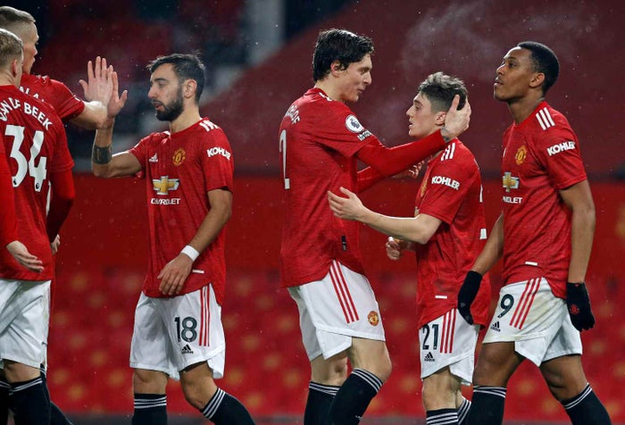En el segundo periodo marcaron el francés Anthony Martial (69 y 90), Scott McTominay (71), el portugués Bruno Fernandes (87 penal) y el joven Daniel James (90+3).