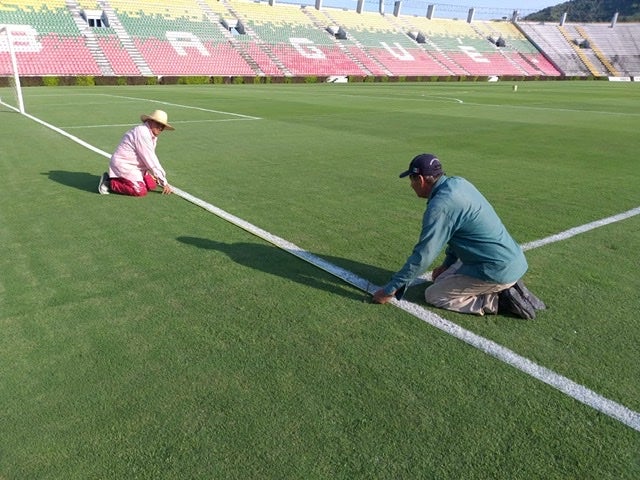 Siguen cuidando el gramado del estadio Murillo Toro