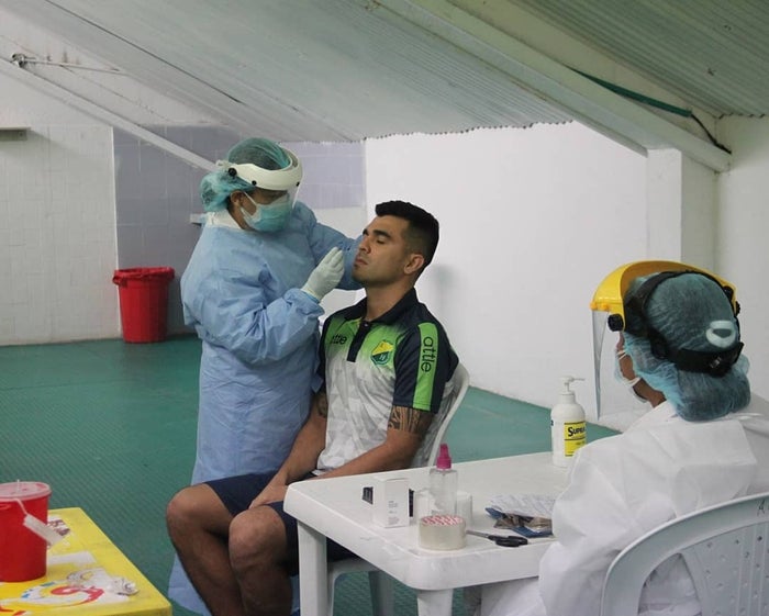 Cuerpo técnico, jugadores, departamento médico y personal de logística que hacen parte del grupo de 40 personas autorizadas, para el regreso a entrenamientos y posteriormente a competencias, cumplieron con la toma de muestras para determinar si tienen o no Covid-19, esto como requisito para seguir con las fases dentro del protocolo de bioseguridad que viene implementando cada uno de los equipos que hacen parte del fútbol profesional colombiano.