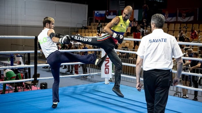 Y por último está el Combat, que es la modalidad al Nocaut, donde se permite el uso de la fuerza, de la potencia y donde se califica la efectividad. Es una de las modalidades más exigentes de la disciplina deportiva del Savate.