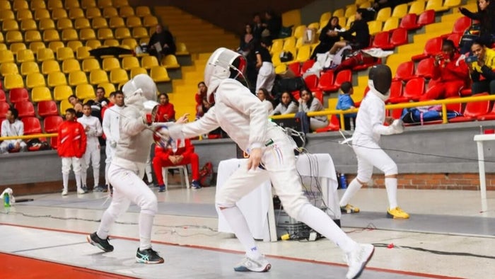 Abby Tello, sable femenino M9; John Rico, florete masculino M15; Mariana Gallego, espada femenino M13; Martín Pardo, espada masculino M11; Dereck Sánchez, florete masculino M11; Emily Ariana, sable femenino M15.