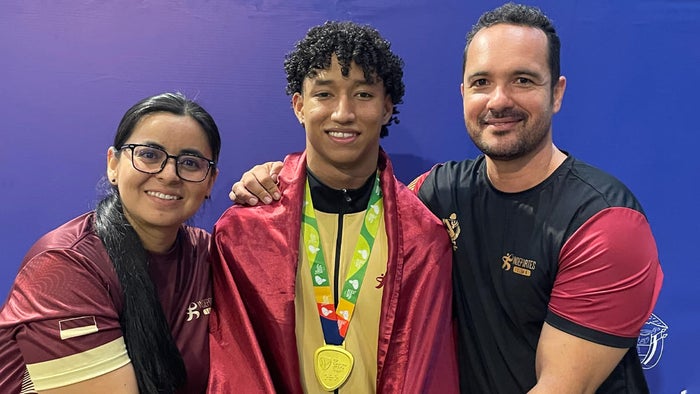 La presea dorada por intermedio del deportista Sebastián Olivares, quien este lunes muy temprano viajará con la selección Nacional de levantamiento de pesas a Ayacucho, Perú, para competir en los Juegos Bolivarianos del Bicentenario 2024.