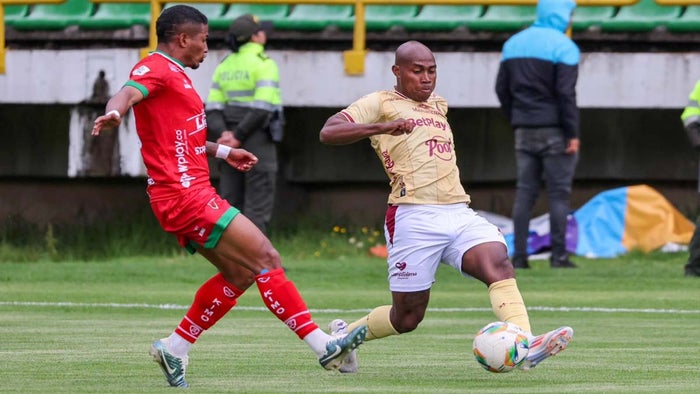 Tolima dispuso otro juego para administrarlo y dejó que Patriotas tomara el balón y la iniciativa en el primer cuarto de hora, cuando aceleró, Kevin Pérez marcó el 1 a 0 con un buen control de balón y remate bien acomodado.