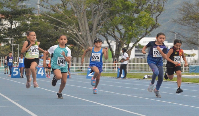 Deportistas en el estadio de Atletismo del parque Deportivo de Ibagué