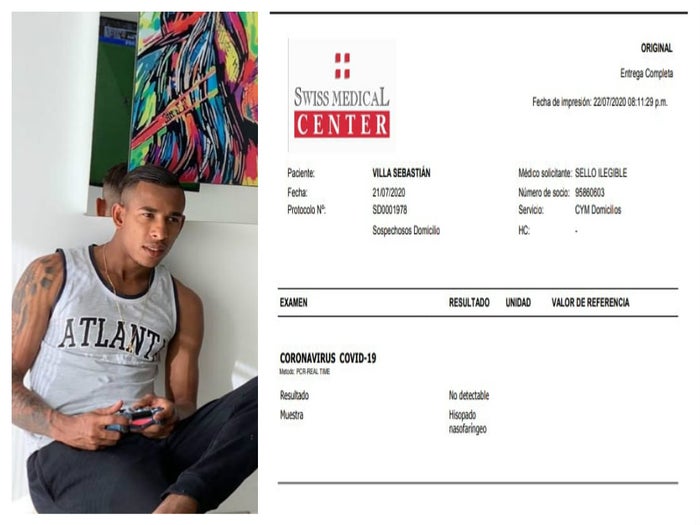Teniendo en cuenta la inminente salida de Villa del club xeneixe y las ofertas que están surgiendo, una del Atlético Mineiro de Brasil y otra de los Ángeles Galaxy de Estados Unidos -MLS, el futbolista salió al paso, primero en su cuenta de Instagram, donde da a entender que mentalmente y físicamente está para seguir adelante, pero no se conformó con esto y entregó públicamente el resultado de su prueba que le arroja No contagio de coronavirus.