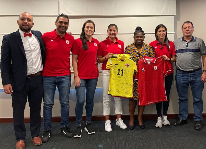 Este domingo 14 de agosto, la vicepresidenta Francia Márquez Mina se reunió en la ciudad de Cali con un grupo de jugadoras de la Liga profesional, entre ellas, Catalina Usme, quien fue la encargada de entregarle a la funcionaria, la camiseta autografiada del seleccionado femenino.