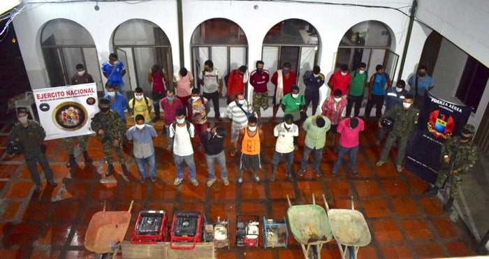 Los capturados fueron dejados a disposición de la Fiscalía 46 del municipio de Guamo, por el delito de explotación de yacimientos mineros y otros materiales.