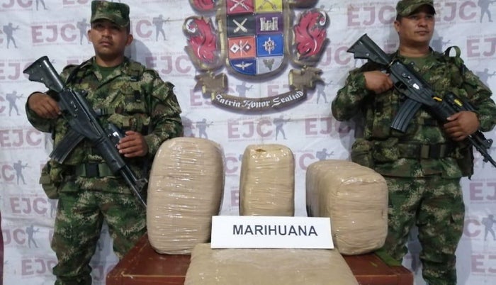 Una vez se observó lo que habían hecho estas personas, de inmediato los militares procedieron a observar los elementos, hallando una chaqueta color azul y un bolso en el que eran transportados los cuatro paquetes de marihuana, así como una cédula de ciudadanía y fotocopias de documentos tales como licencia de conducción y Seguro Obligatorio contra Accidentes de Tránsito, elementos que quedaron a disposición de la autoridad competente.