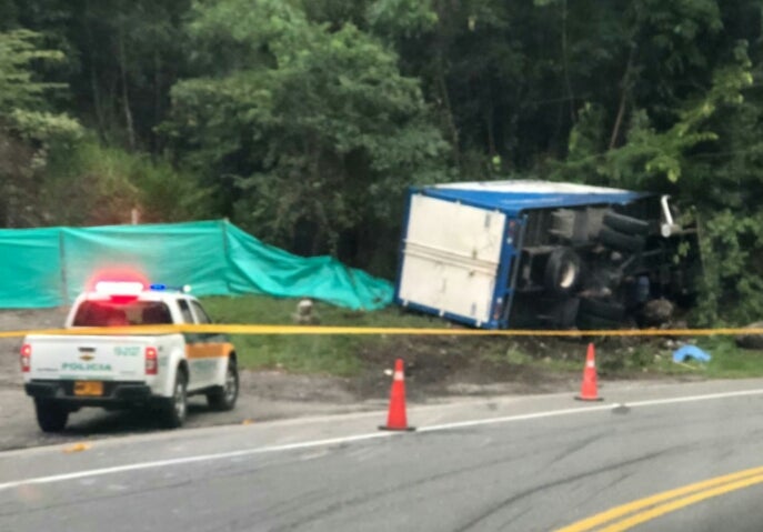 El grave hecho de accidentalidad se presentó sobre las 5:20 de la mañana donde un vehículo tipo camión terminó volcado lateralmente momentos en los que transitaba por el sector conocido como el alto de gualanday transportando dos personas que resultaron gravemente heridas.