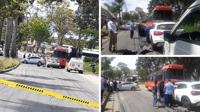 En el siniestro vehicular se vieron comprometidos una camioneta blanca de placa FDN 722, una buseta de número de matrícula WTK 925 y un automóvil Chevrolet plateado de número de matrícula RZZ 523.