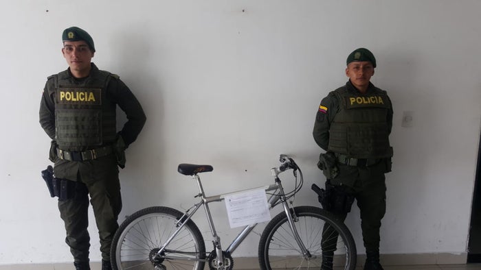 Los hombres de la fuerza pública, los cuales comprobaron que el rodante era el mismo que había sido hurtado, procedieron a aprender al joven e incautar la bicicleta, y el arma blanca, siendo dejado el adolescente a disposición de las autoridades encargadas de los menores infractores.