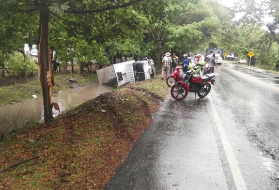 El accidente de tránsito se registró en las últimas horas sobre el kilómetro 31 de la vía que Ibagué conduce hacia el municipio del Espinal, sector del SENA, donde un vehículo de carga pesada tipo furgón terminó volcado lateralmente a un costado de la carretera, luego que su conductor perdiera el control al sufrir un lapsus de micro sueño.