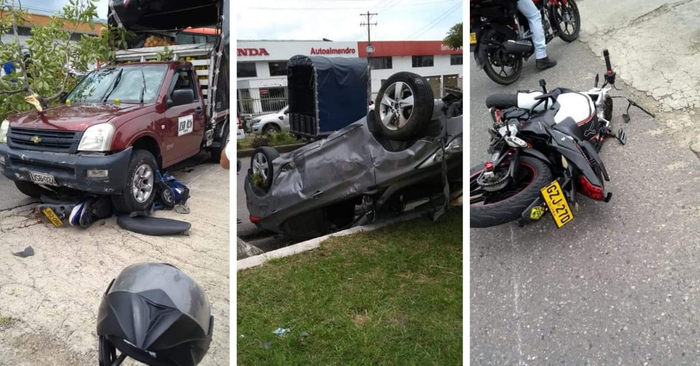 En medio de la calle 63 con avenida Mirolindo se presentó hace pocos minutos un aparatoso accidente donde dos carros particulares y dos motocicleta se vieron involucrados. Los automóviles presentan serias afectaciones en su carrocería y por lo menos hay 5 personas heridas.
