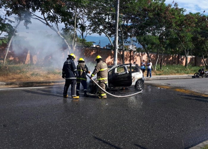 La emergencia se registró en la vía de acceso al barrio Las Americas, comuna nueve de Ibagué, donde el conductor de un automóvil Renault Twingo de placas CSQ-662 modelo 2001, terminó incendiándose producto de un presunto corto circuito que generó la emergencia.