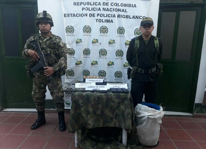 Gracias a una información suministrada por la ciudadanía, personal de la Policía departamental en coordinación con tropas del Ejército Nacional se desplazaron hasta la vereda Santa Fe ubicada en la zona rural del municipio de Rioblanco, donde localizaron una caleta con material de guerra.