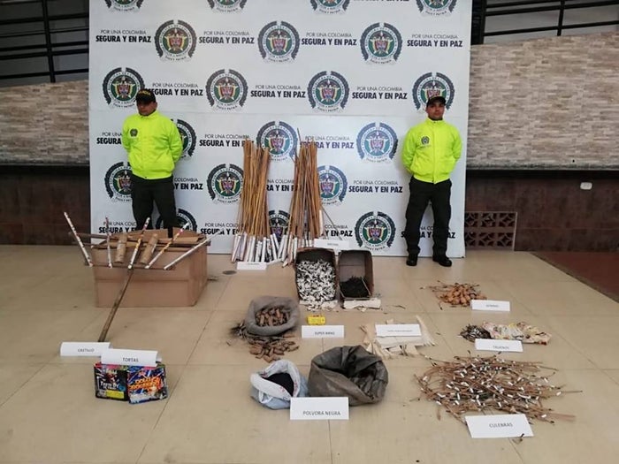 "Aproximadamente cerca de 190 kilos de pólvora que estaban siendo comercializadas y utilizadas ilegalmente, ya en lo corrido de diciembre van más de 430 kilos de pólvora incautada a un valor aproximado de 40 millones del material incautado, lo que ha permitido una importante reducción en las personas lesionadas con pólvora a comparación con el año pasado, para ésta misma época para el mes de diciembre se presentaron el 24 y 25 de diciembre 7 u 8 casos de lesionados con pólvora, éste año sólo fueron 3 casos y una menor de edad proceso que es vigilado por las autoridades administrativas para sancionar a los padres por permitir la manipulación de los elementos en menores de edad", señaló el Secretario de Gobierno Daniel Soto Mejía.