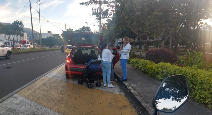 La madre no se percató de que el niño se había caído, afortunadamente una mujer que se encontraba en la acera se percató del hecho y viendo la escabrosa imagen y como un vehículo se acercaba peligrosamente al niño, estalló en gritos y la conductora detrás del volante alcanzó a frenar, evitando que este hecho se convirtiera en tragedia.