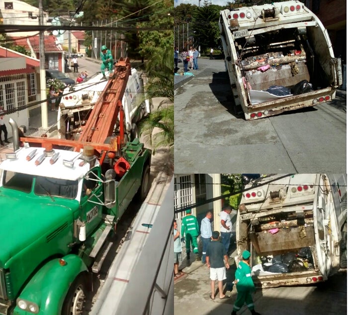 La compleja situación se presentó sobre la manzana B entre los barrios Entrerrios y Primavera, donde un pequeño hueco cedió ante el peso de un camión de la basura y terminó "tragándose" una de las llantas traseras dejando el vehículo de la empresa Interaseo en riesgo de volcarse lateralmente.