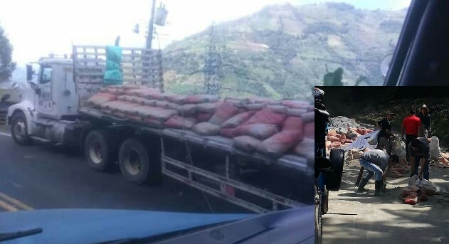 El particular caso de accidentalidad se registró en las últimas horas en el kilómetro 62 sentido Cajamarca - Ibagué, en el sector conocido como Japón, donde un vehículo de carga pesada tipo tracto camión sufrió un percance al dejar caer una gran parte de la carga de cemento que transportaba con destino hacia el centro del país.