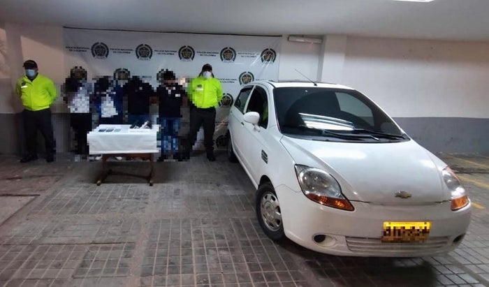 Ya con las características aportadas, se inicia un operativo por medio de un plan candado donde gracias a la articulación con personal de tránsito y transporte y la Sijín, sobre el sector del peaje de Chinauta, es ubicado un vehículo con las similitudes, en el cual se encontraban cuatro sujetos estacionados a un costado de la vía, a quienes al momento de realizarles registro e identificación a personas y vehículos, se halló en el interior del mismo, sobre el baúl debajo del tapete que cubre la llanta de repuesto un arma tipo pistola calibre 9 milímetros color negro con munición traumática, un arma de balines tipo pistola color negro y elementos varios los cuales al parecer habrían sido hurtados, siendo capturados de inmediato.