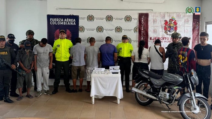 Se trata de José Eduardo Rangel, alias ‘Pote’; Lorena Garay Mejía, José Axsael Olaya Olaya, alias ‘Chiche Negro’; Jhon Harvy Londoño Olaya, alias ‘Lalo’; Giovanni Alexander Castro, alias ‘Rolo’; Fabián Alberto Ruiz Morales, alias ‘Condón’; Luis Omar Másmela, alias ‘Barbas’; Fernando Aragón Acuña, alias ‘Rin’, y Óscar David Giraldo Muriel, alias ‘El Negro’.