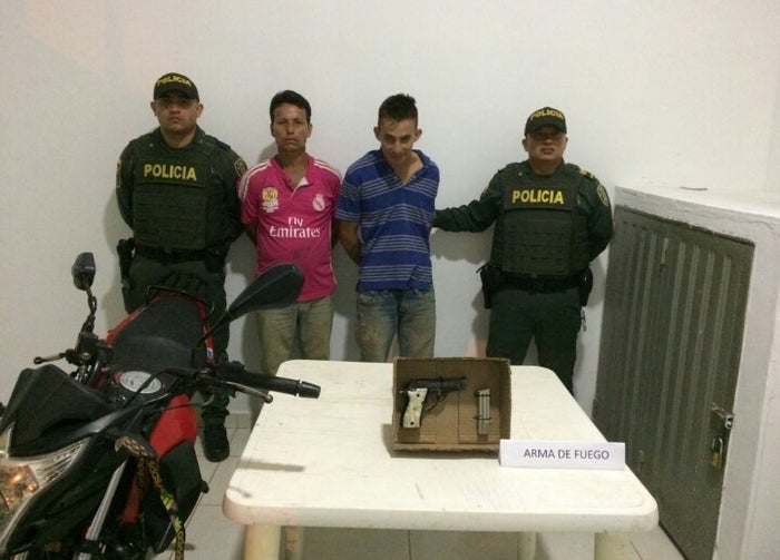 Según el reporte de la Policía departamental, al practicarles una requisa se les halló en su poder una pistola marca Prieto Beretta calibre 7.65, procediendo a leerles los derechos como personas capturadas, para que respondan por el delito de porte ilegal de armas de fuego.