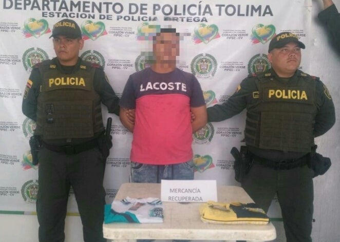 El caso se registró en la carrera Sexta con calle 14 del barrio La Vega del municipio de Ortega, donde integrantes del Modelo Nacional de Vigilancia Comunitaria por Cuadrantes de la Policía departamental, lograron la captura en flagrancia de un sujeto de 27 años quien había salido de un almacén de ropa, luego de hurtar varias prendas de vestir.