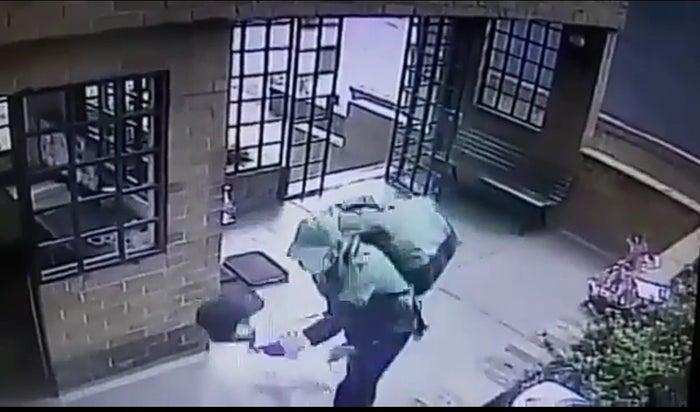 En la cámara de seguridad se observa cuando los hombres entraron a varios apartamentos y se roban pertenencias, mientras que el portero es llevado a la zona de parqueadero para que no se interponga en el delito.