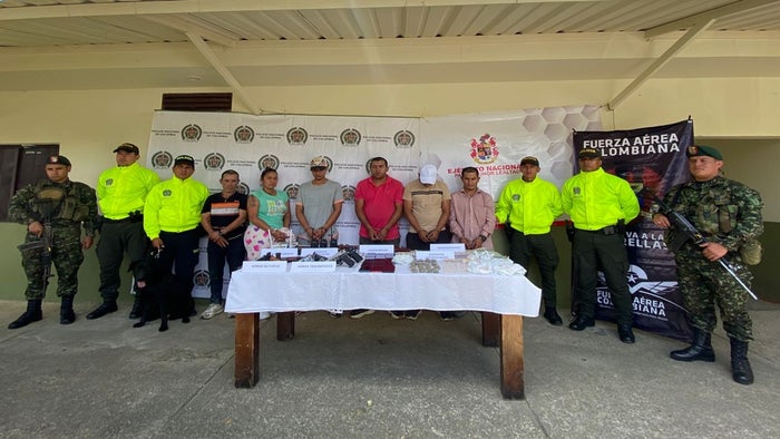 Durante los allanamientos, a estos seis sujetos las autoridades les incautaron un arma de fuego con cartuchos de diferentes calibres y 376 gramos derivados de la cocaína. Fueron dejados a disposición de la autoridad competente por las presuntas conductas punibles, tales como concierto para delinquir agravado, desplazamiento forzado, homicidio agravado, porte ilegal de armas y narcotráfico.