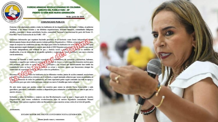 La zozobra reciente se originó tras la circulación de un panfleto presuntamente firmado por un grupo que se identifica como Frente 13 Iván Ríos Nueva Generación, liderado por alguien que se hace llamar Márlon Guevara. En el documento, el supuesto comandante afirma que su estructura hace presencia en Natagaima, Pueblo Nuevo, Las Brisas y otros municipios del sur del Tolima, así como en zonas colindantes con el departamento del Huila.