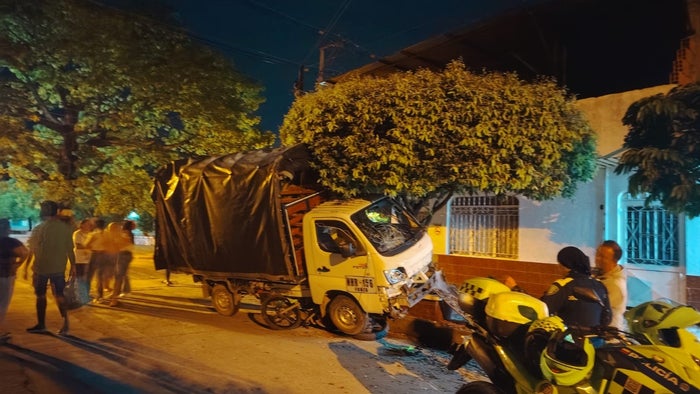 Un grave accidente de tránsito ocurrido en el barrio San Rafael, en el municipio de El Espinal, dejó a dos policías gravemente heridos luego de ser arrollados por un furgón que circulaba por la Carrera 7 con Calle 3.