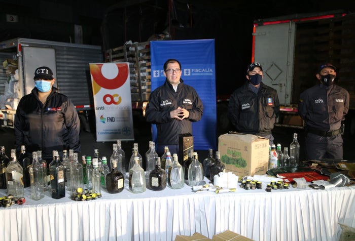El Fiscal General de la Nación, Francisco Barbosa Delgado, lideró el operativo más grande que haya realizado la entidad contra las estructuras ilegales señaladas de adulterar licor, y afectar la salud y la vida de miles de colombianos. En 30 diligencias de registro y allanamiento realizadas en las localidades de Kennedy, Bosa, Tunjuelito, Ciudad Bolívar, Rafael Uribe Uribe, Antonio Nariño, Puente Aranda, Teusaquillo y Suba, en Bogotá; y en Soacha (Cundinamarca), investigadores del CTI, adscritos a la Dirección Especializada contra las Violaciones Humanos, pusieron en evidencia a una industria criminal dedicada a la falsificación y elaboración artesanal e insalubre de bebidas embriagantes nacionales e importadas.