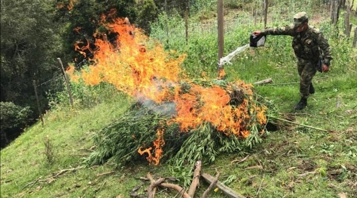 Los soldados realizaron la respectiva erradicación del cultivo de más de 300 matas de marihuana, para su posterior quema controlada.