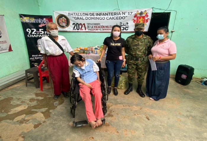 Y agregó, “Para poder movilizarla era casi imposible y tenía que mantenerla en su cuarto, hoy gracias a nuestros Soldados que no se cansan de ayudar llegan con una gran sorpresa y es la entrega de una silla de ruedas ortopédica, mercado y elementos de aseo, vitales para sobrellevar la difícil situación que enfrentan”, dijo.