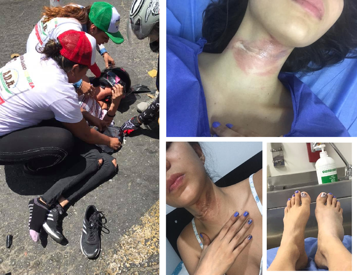 En lo indicado por Paula, las principales lesiones que tiene son dos fisuras en el pie, traumas en la rodilla y su cuello está totalmente quemado y lacerado, haciendo imposible para la joven poder girarlo o siquiera comer con facilidad.