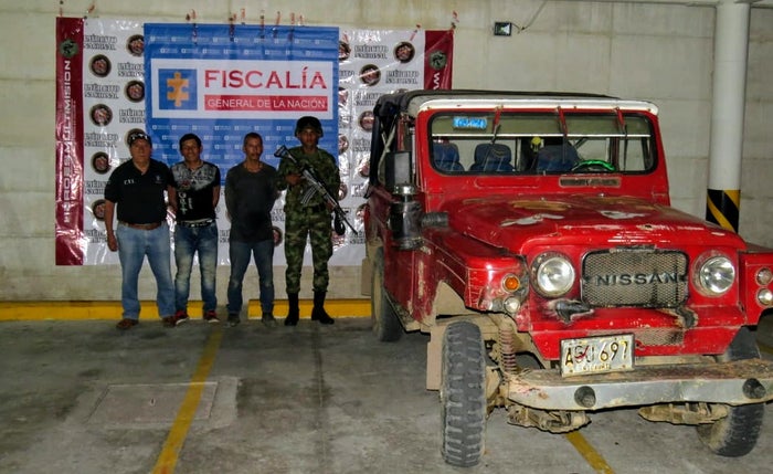 Ricardo David Tapia Sogamoso y Adalbert Giron Moreno, de 37 y 25 años respectivamente, fueron presentados a estrados judiciales, luego que fueran capturados por miembros del Cuerpo Técnico de Investigación (CTI) de la Fiscalía, Seccional Tolima, adscrito a la Unidad Local de Chaparral, con el apoyo del Ejército Nacional.