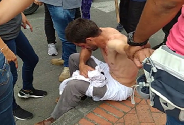 El más reciente caso ocurrió hace pocos minutos cuando uno de estos limpiavidrios se acercó a un vehículo e intentó sacar un celular del mismo, reaccionando los demás conductores y la comunidad en general que lo alcanzaron y golpearon en repetidas ocasiones. En medio de la ‘paloterapia’ pasaban por el lugar unos funcionarios del CTI quienes evitaron que lo siguieran golpeando y entregaron a las autoridades locales.
