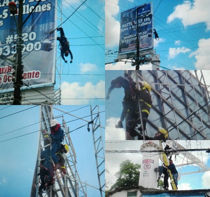 De inmediato el hombre quedó suspendido de cabeza por los arnés de seguridad, mientras permanecía inconsciente, requiriendo que uno de sus compañeros se subiera rápidamente para tratar de auxiliarlo.