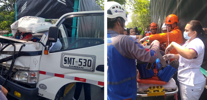 Al lugar hizo presencia de forma inmediata voluntarios de la Defensa Civil y miembros del cuerpo de bomberos voluntarios de la mencionada municipalidad, quienes al llegar se percataron que el conductor de la turbo había quedado atrapado en la cabina y que no podía salir por sus propios medios, dado que se encontraba aprisionado dentro de ella.