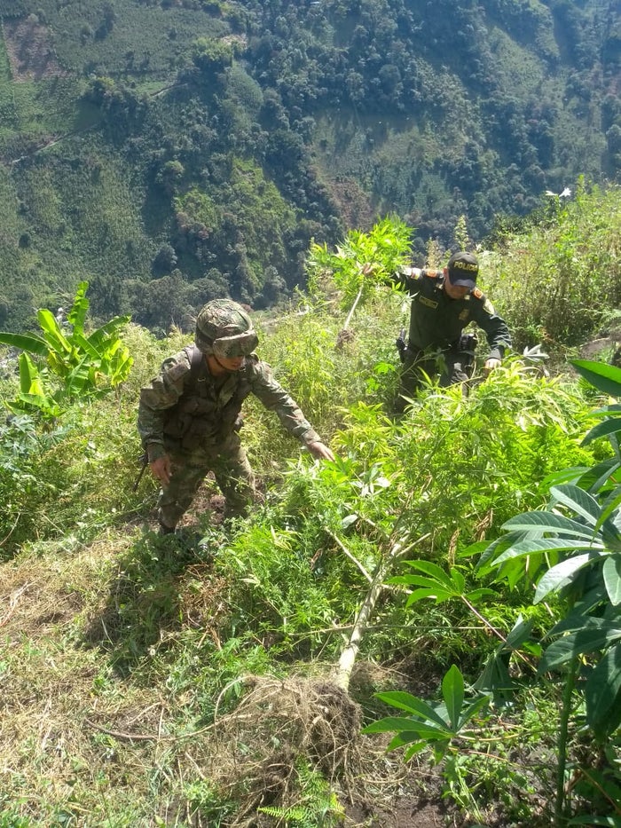 En un trabajo adelantado por tropas de la Sexta Brigada del Ejército Nacional y unidades de la Policía Metropolitana de Ibagué se consiguió erradicar un cultivo de marihuana que había sido sembrado en la vereda El Alto, corregimiento de Juntas, zona rural de la capital musical de Colombia.