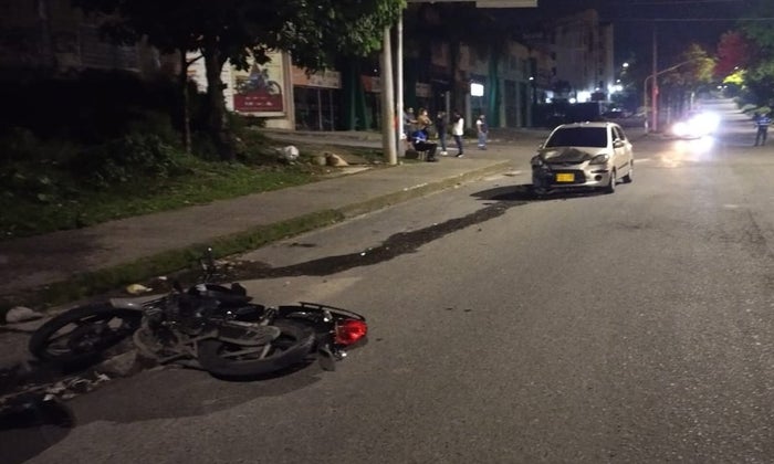 Información suministrada a la redacción judicial de las noticias de La Cariñosa 1.420 AM da cuenta que el conductor de la moto de placa ADP – 27G, chocó con el vehículo particular de placa CZI – 135, muy cerca del semáforo del Palermo, ubicado sobre la avenida Pedro Tafur.