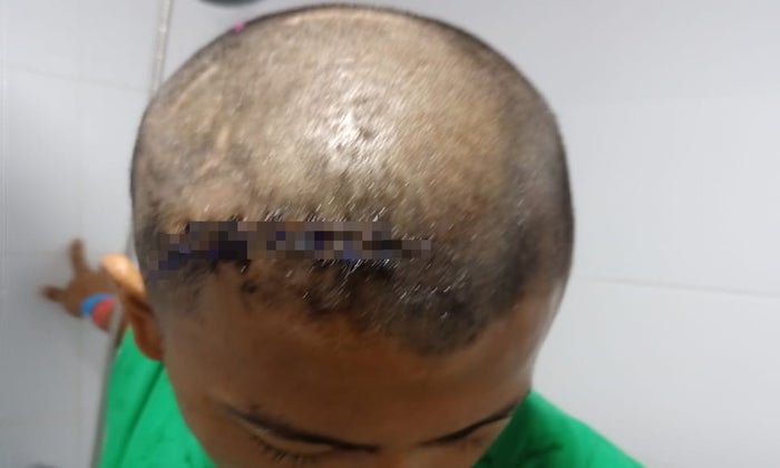 Se pudo establecer que producto de la herida, a este joven le habrían cosido 17 puntos en su cabeza y al parecer con el arma blanca, por el fuerte impacto y la cortada, se afectó el cráneo de la víctima.