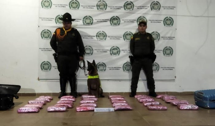 El hecho se presentó en horas de la tarde, momentos en que personal del grupo de carabineros y guías caninos, se encontraban realizando planes y controles diferenciales a viajeros y transportadores sobre el terminal de transportes del municipio de Honda, lugar donde gracias al olfato del canino detector de narcóticos ‘Lanny’, los uniformados lograron la aprehensión de dos menores de 14 y 17 años, donde al momento realizar registro e identificación a persona y al equipaje (dos maletas), el canino da señal positiva, logrando detectar más de 31 kilos de marihuana, equivalentes a cerca de 90 mil dosis, avaluadas en más de $50.000.000.