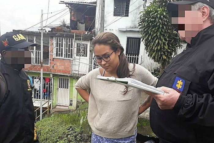 En el despacho del juez octavo con función de garantías fue llevada la mujer identificada como Ana María Guzmán Hernández, quien había sido detenida por integrantes del CTI de la Fiscalía Seccional Tolima y el Gaula Militar, en vía pública del municipio de Dosquebradas (Risaralda), con respecto a una orden judicial en su contra.